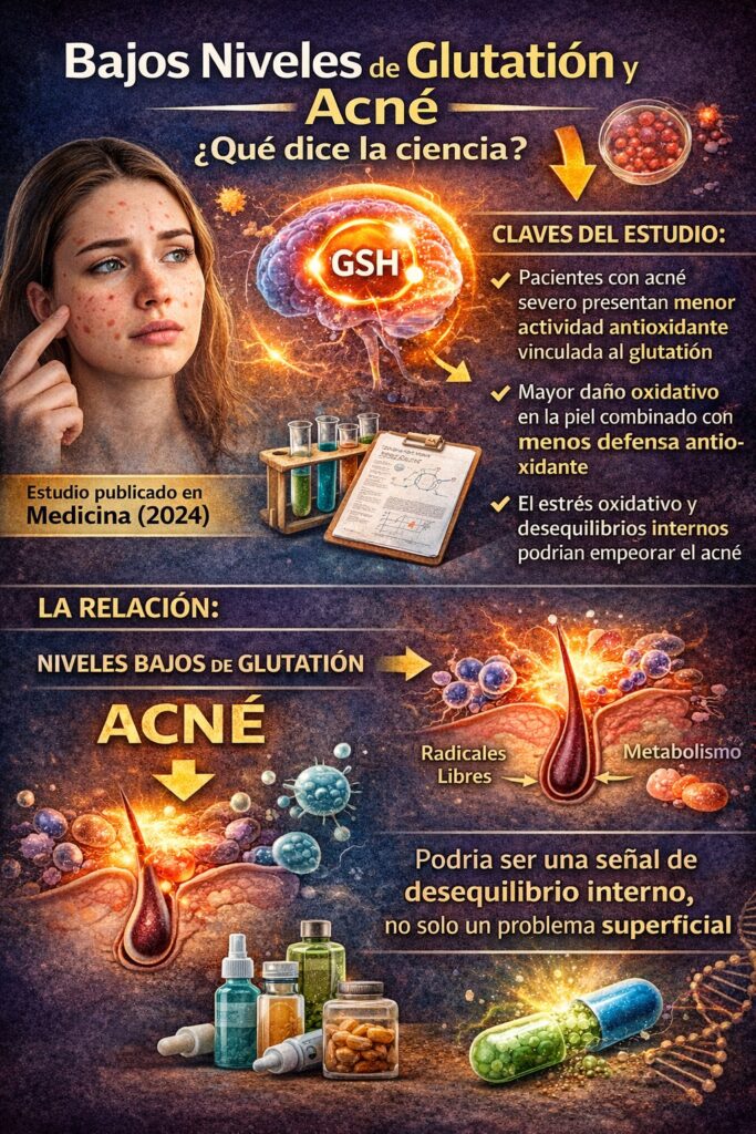 👉 una disminución del glutatión puede contribuir al desarrollo del acné (PubMed)