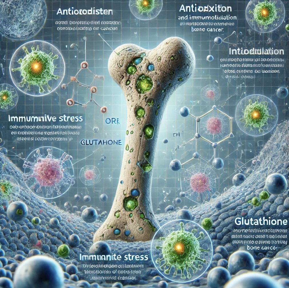 - El glutatión interviene en procesos de apoptosis (muerte celular programada), ayudando a regular la proliferación anormal de células cancerosas en el hueso.