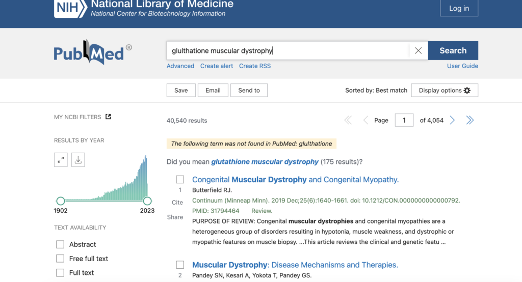 Existen multiples estudios documentando en PUBMED los beneficios de subir el Glutation en temas de Distrofia Muscular …. Fuente: https://pubmed.ncbi.nlm.nih.gov/?term=glutathione+muscular+dystrophy Aqui puedes ver uno de varios …. Artículos similares Ver todos los artículos similares Citado por Fuente: https://pubmed.ncbi.nlm.nih.gov/22219131/