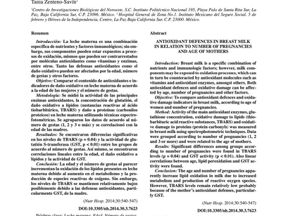 Defensas antioxidantes en leche materna en relación al número de gestas y a la edad de las madres