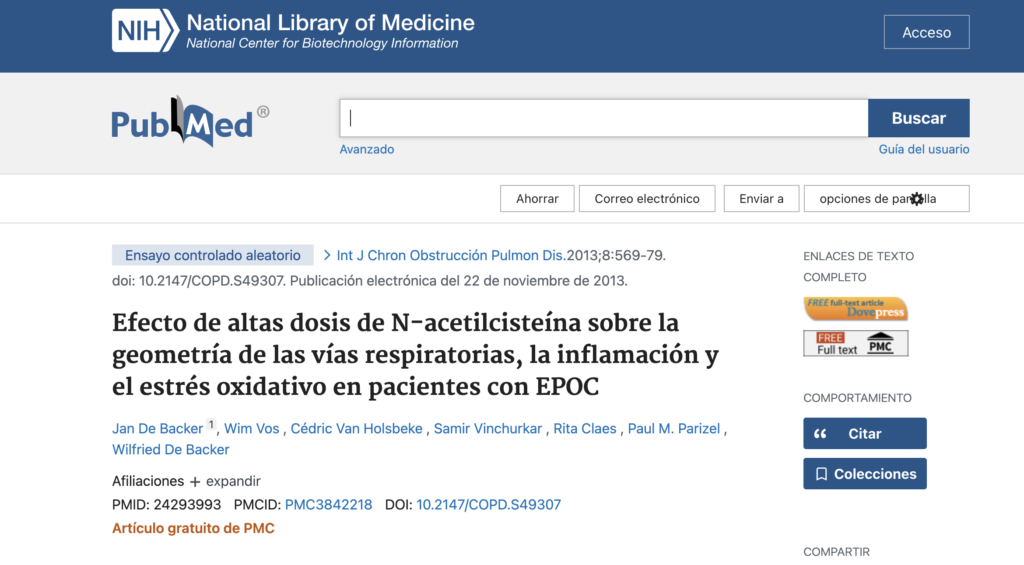 Adicionalmente podremos ver mas estudios aqui : https://scholar.google.es/scholar?hl=es&as_sdt=0%2C5&q=glutathione+COPD&btnG=