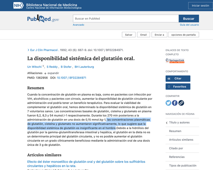 GLUTATION consumido de Forma ORAL No funciona acorde a Estudios By administrator | January 25, 2022 Fuente : https://pubmed.ncbi.nlm.nih.gov/1362956/ Fuente: https://pubmed.ncbi.nlm.nih.gov/3995022/ Posted in advertencias