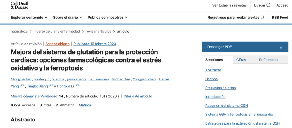 GLUTATION utilizado para CARDIOPROTECCIÓN By administrator | July 9, 2023 GLUTATION utilizado para CARDIOPROTECCIÓN (prevención de enfermedades del corazón) FUENTE: https://www.nature.com/articles/s41419-023-05645-y Posted in enfermedades