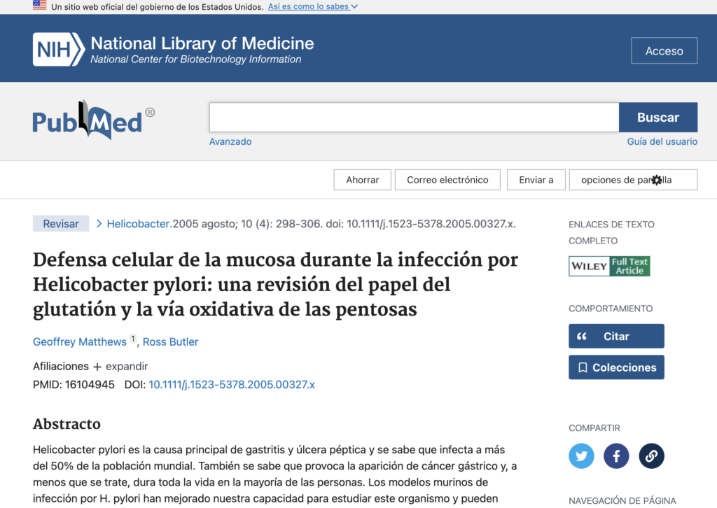 - Sinergismo de la infección por Helicobacter pylori y estrés en el aumento del daño de la mucosa gástrica y su prevención con alfa-tocoferol.Oh TY, Yeo M, Han SU, Cho YK, Kim YB, Chung MH, Kim YS, Cho SW, Hahm KB.Biol Med de radicales libres. 1 de junio de 2005; 38 (11): 1447-57. doi: 10.1016/j.freeradbiomed.2005.02.005.PMID: 15890619