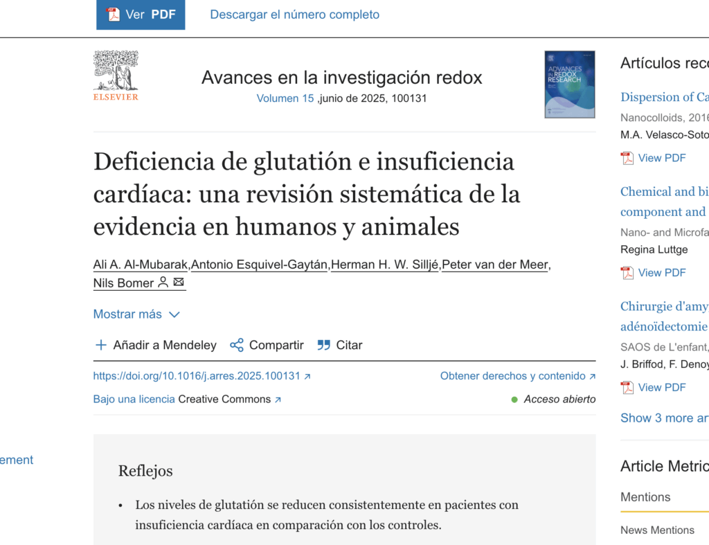 Deficiencia de glutatión e insuficiencia cardíaca: una revisión sistemática de la evidencia en humanos y animales