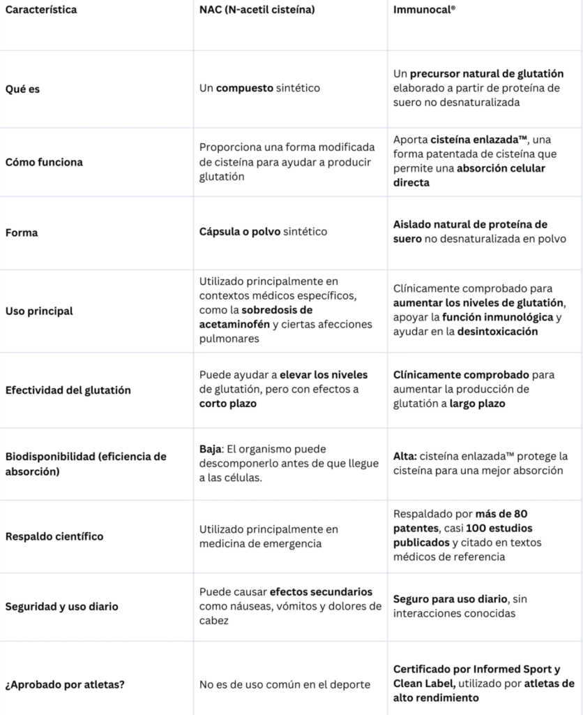 NAC vs. Immunocal®: Diferencias más importantes resumidas