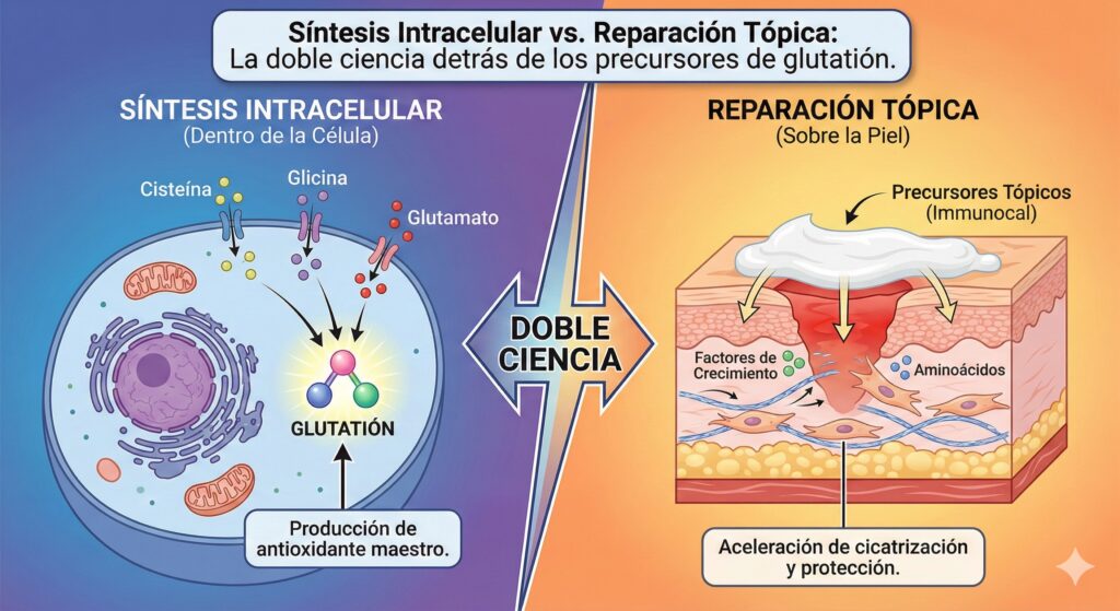Síntesis Intracelular vs. Reparación Tópica: La doble ciencia detrás de los precursores de glutatión.