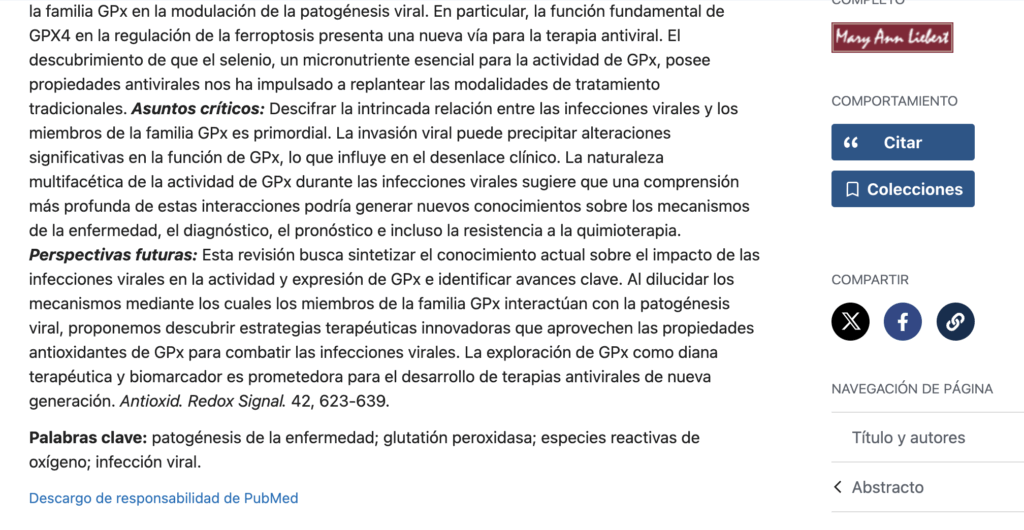 Más investigaciones que establecen el papel del glutatión como tratamiento antiviral.