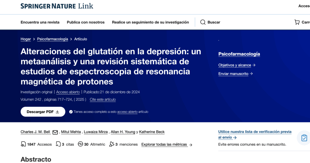 ¡La disminución de glutatión está fuertemente vinculada a la depresión! By administrator | June 23, 2025 Fuentes: https://www.psypost.org/new-neuroscience-research-reveals-brain-antioxidant-deficit-in-depression/ https://link.springer.com/article/10.1007/s00213-024-06735-1 Respaldo adicional: https://www.glutation.net/depresion Posted in enfermedades